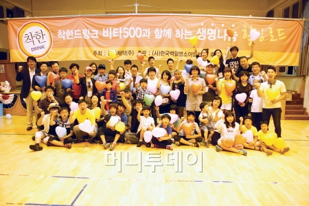Gaung Dong haben ab dieses Jahr 1Won pro eine Flasche Vita500 zurueckgelegt und damit pädiatrischen Krebspatienten geholfen. Und auch am letzten Mai mit dem koreanischen Leukämie- pädiatrischer Krebsverein das Hilfsabkommen in Hoehe von 150 Mil. Won abgeschlossen.